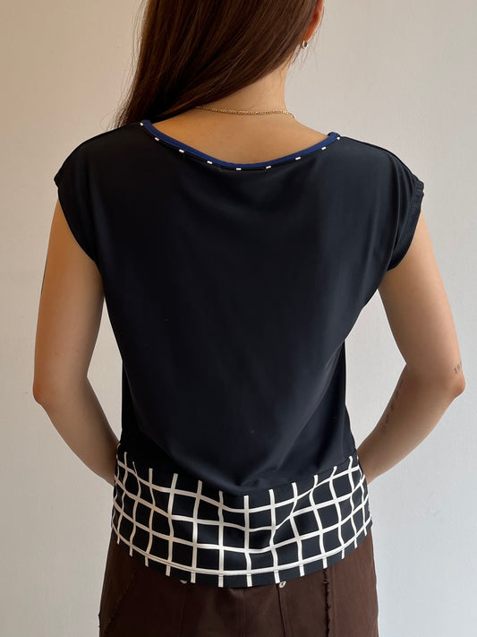 ISSEY MIYAKE Sleeveless Grid Panel Blouse