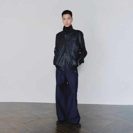 Distressed Leather-Look Drawstring Jacket