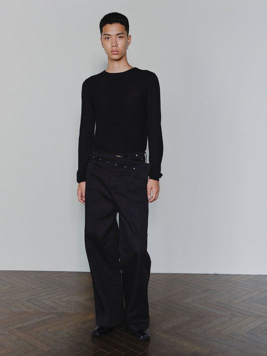 Wide-Belt Pleated Pants