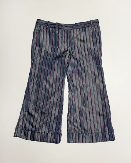 Beautifully crafted stripes capri low waisted trousers in silk material.