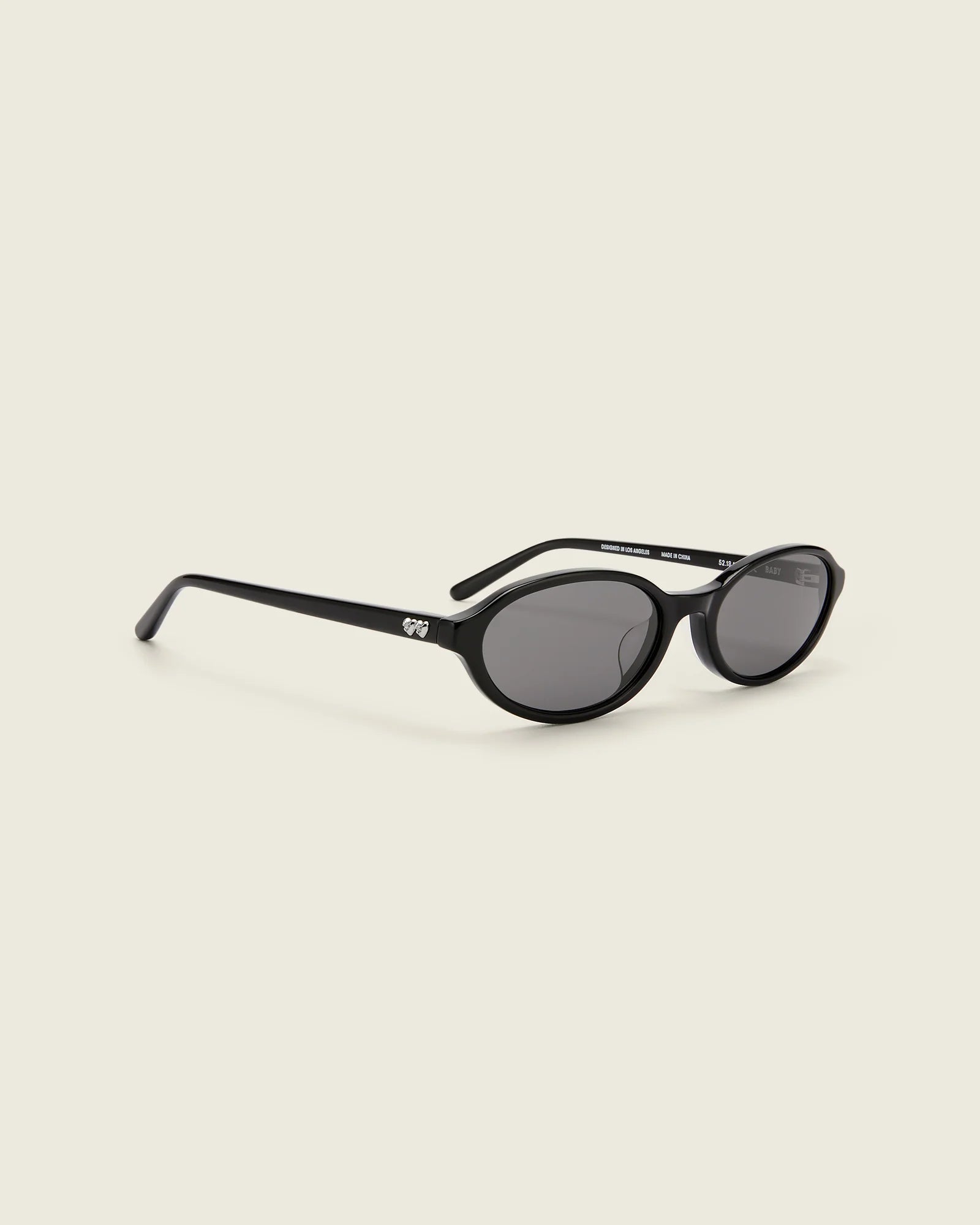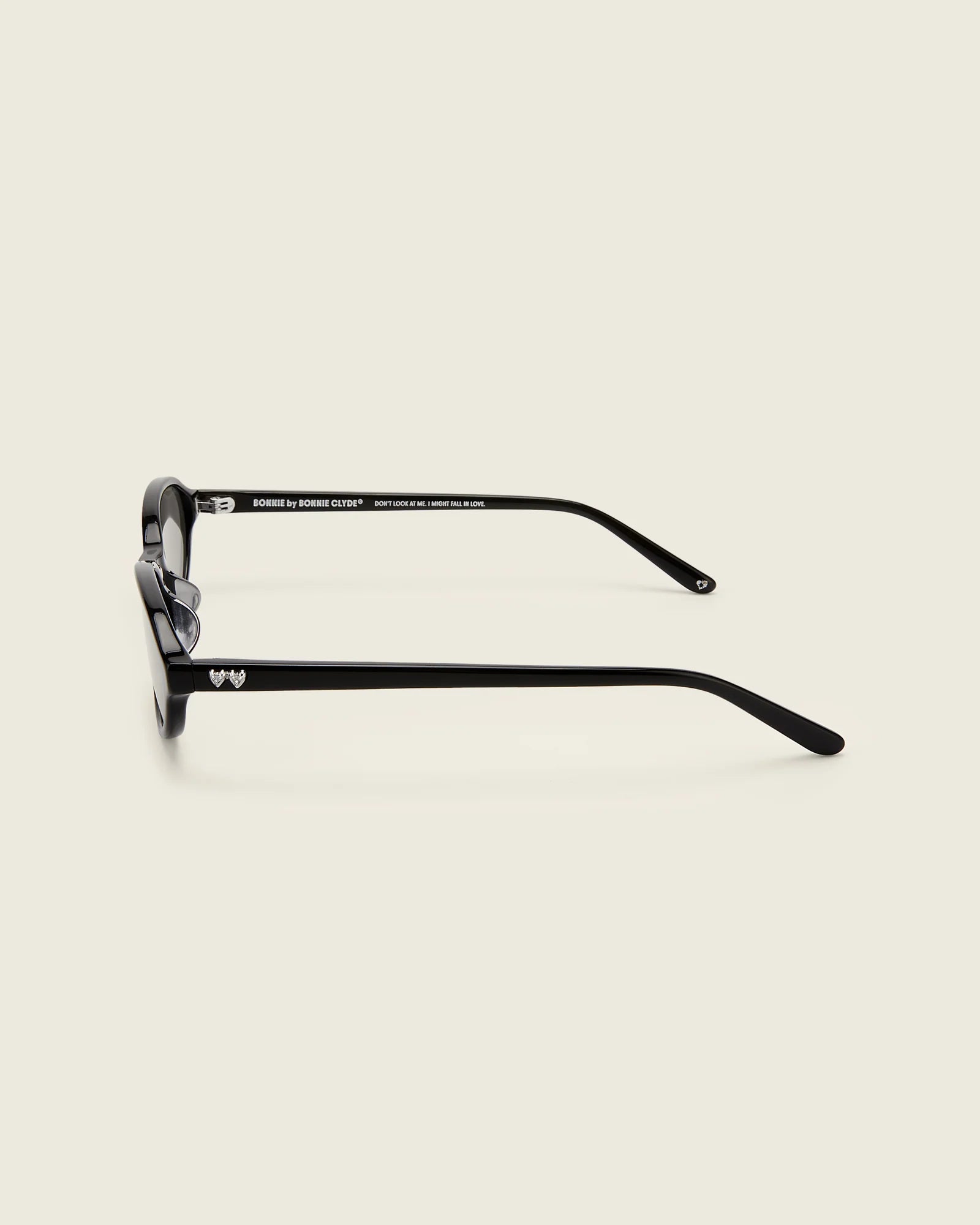 Slim, oval-shaped acetate frames with a refined and minimalist silhouette. The slender straight temples are accented with two heart-shaped motifs, bringing a subtle yet charming detail to the design. Extended nose pads ensure enhanced comfort and a secure fit throughout the day.
