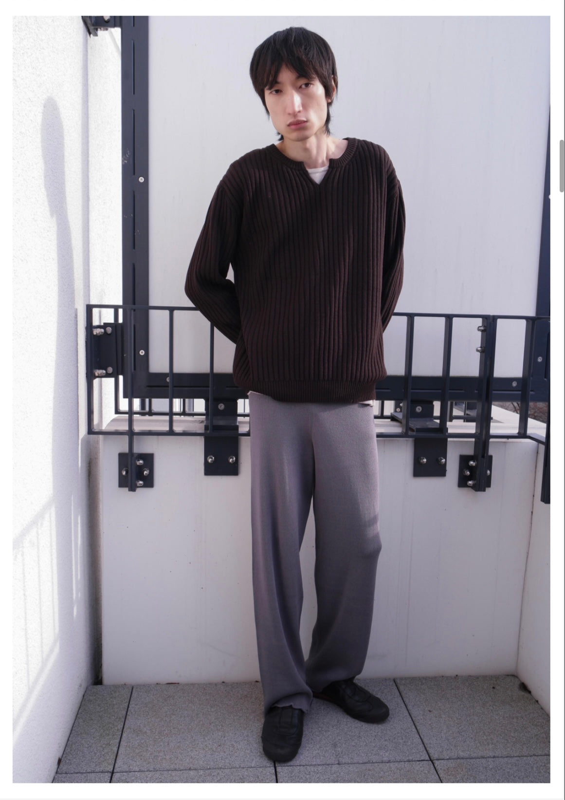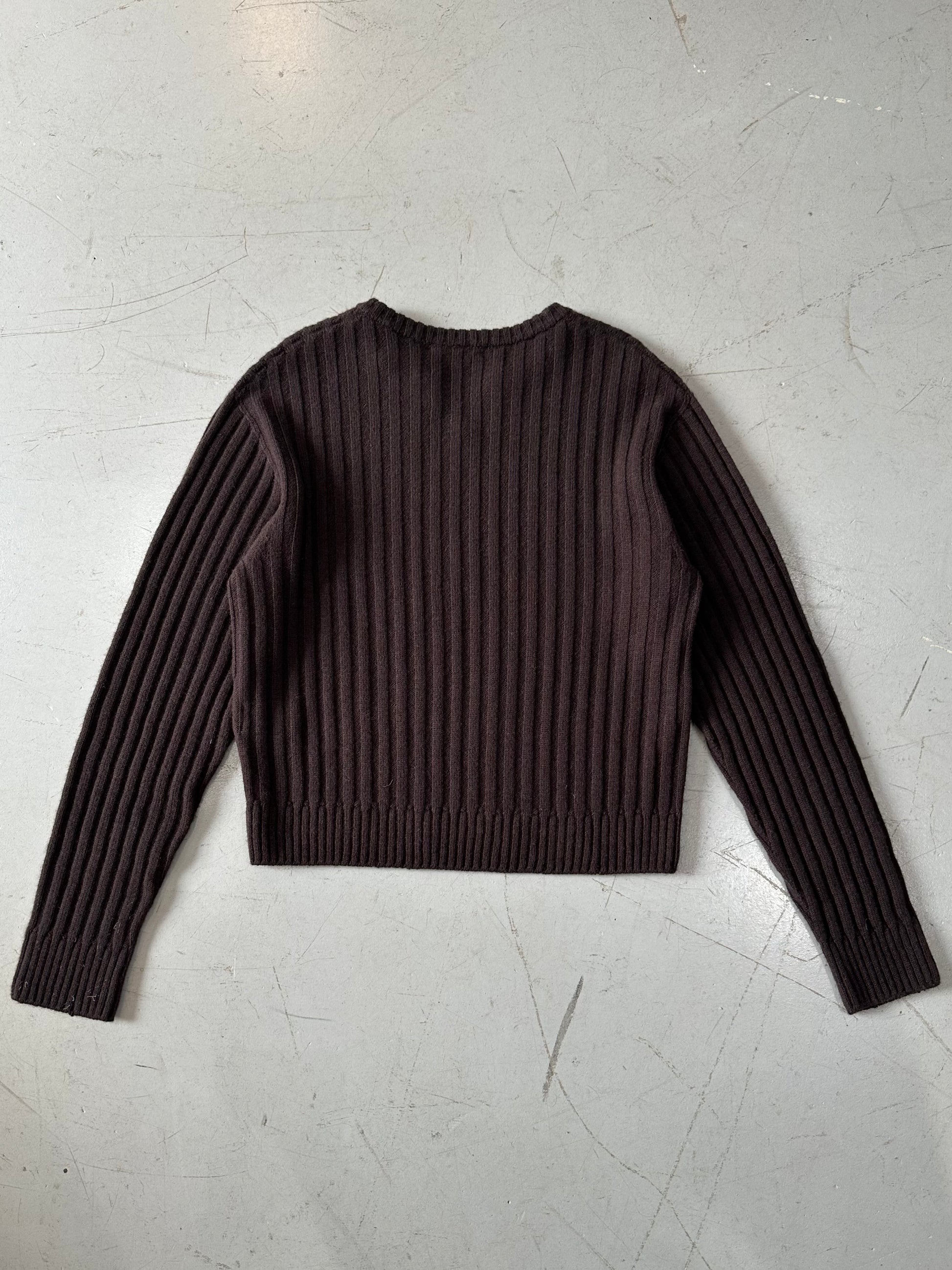 Distressed Split-Neck Pullover In Wool DARK BROWN