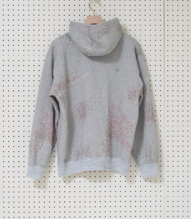 昨今、ジップアップフーディーを見すぎたので自分で縫いつけちゃったようなデザイン。