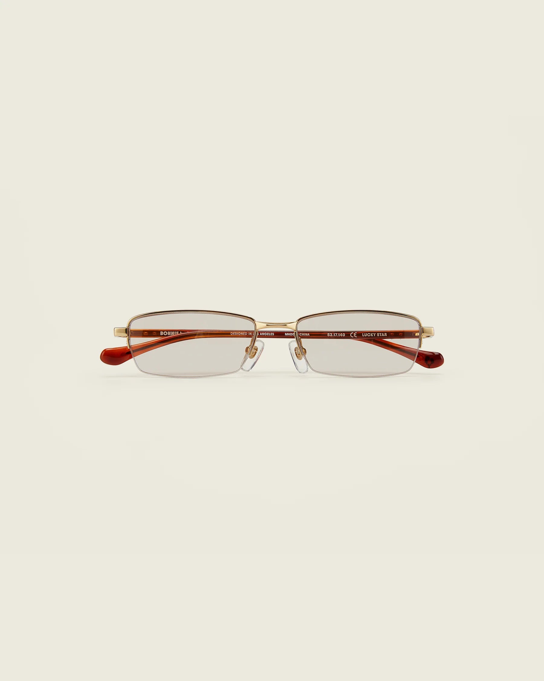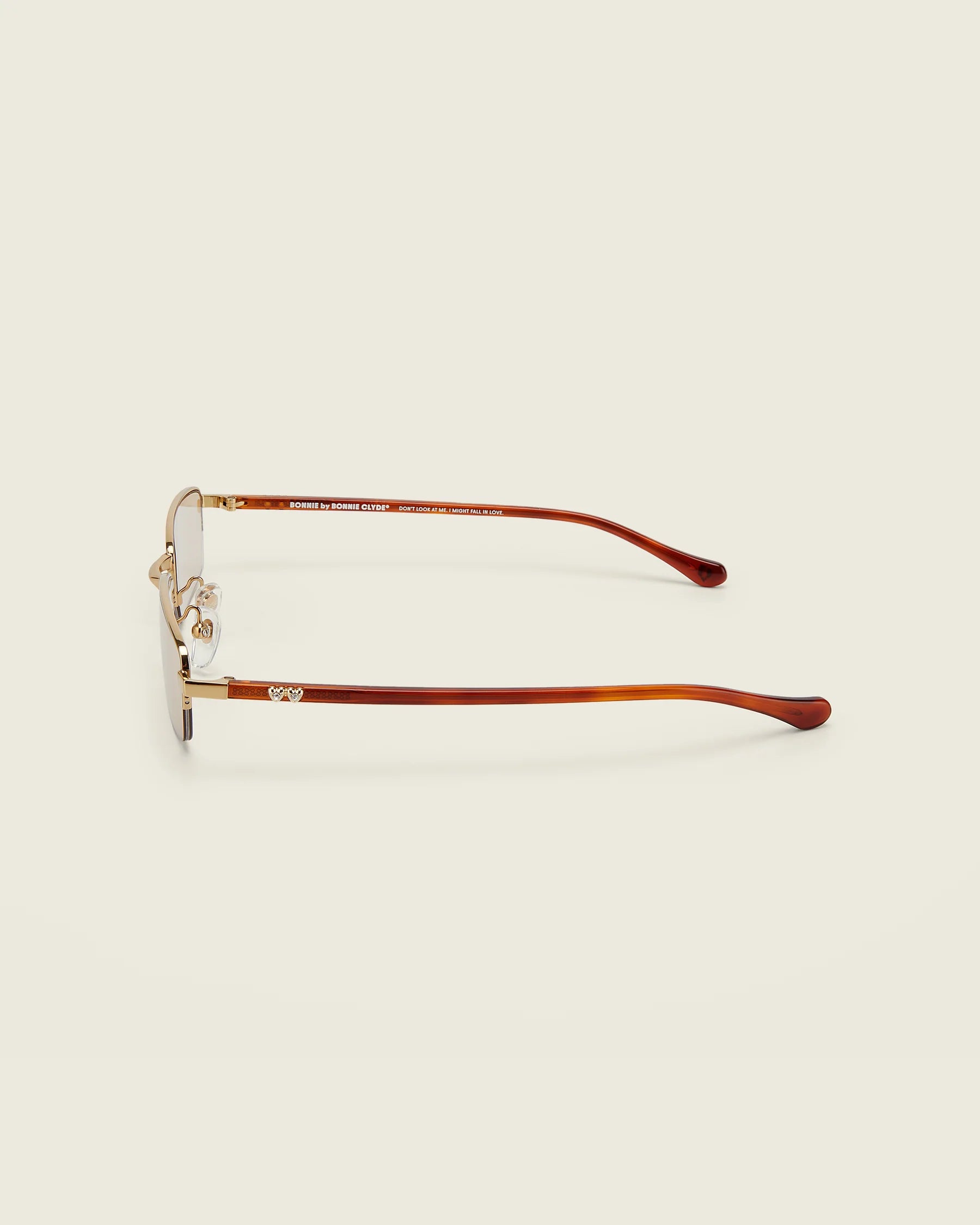 Gold frames paired with brown lenses and brown tortoise-patterned temples create a warm, classic look with a modern twist.