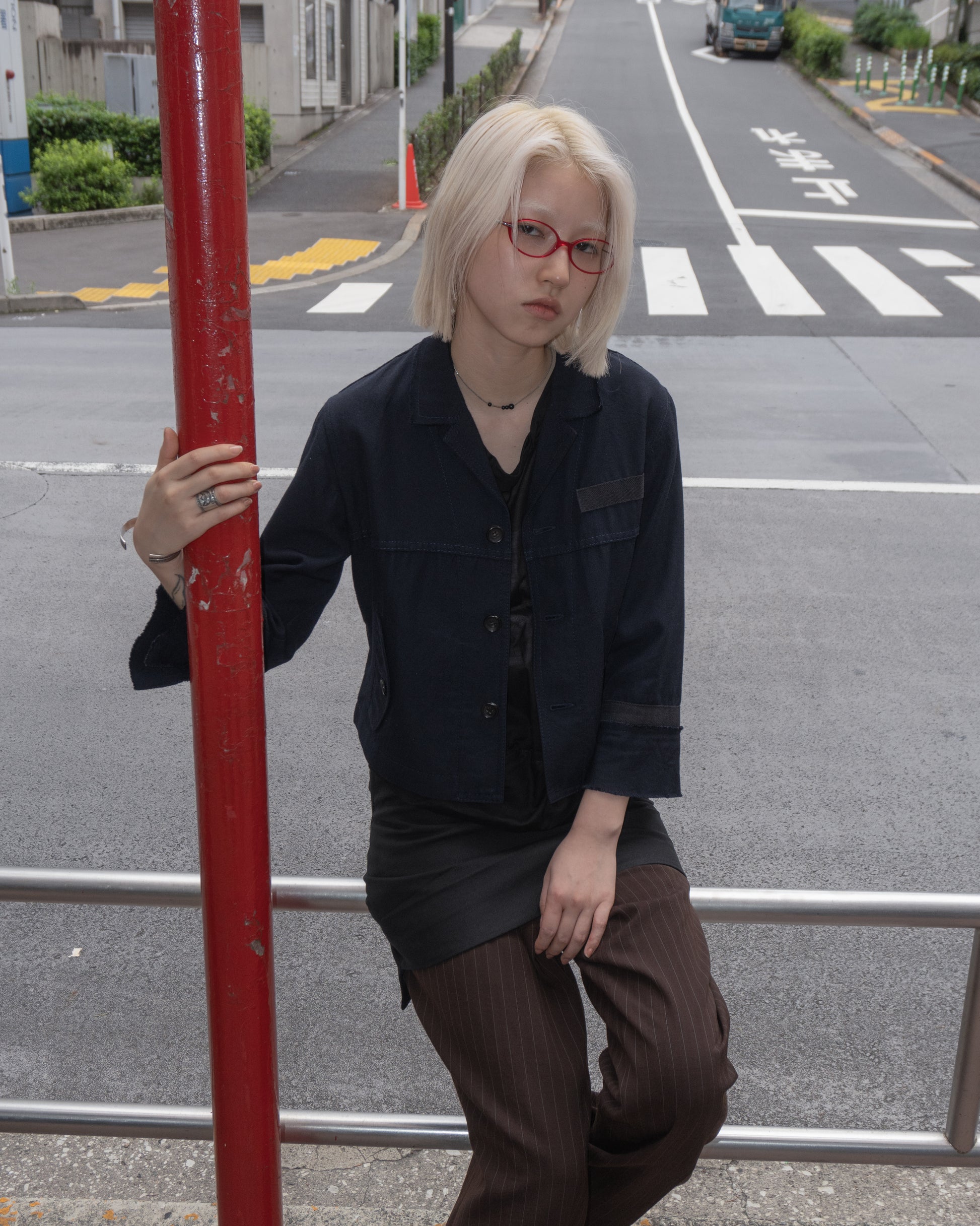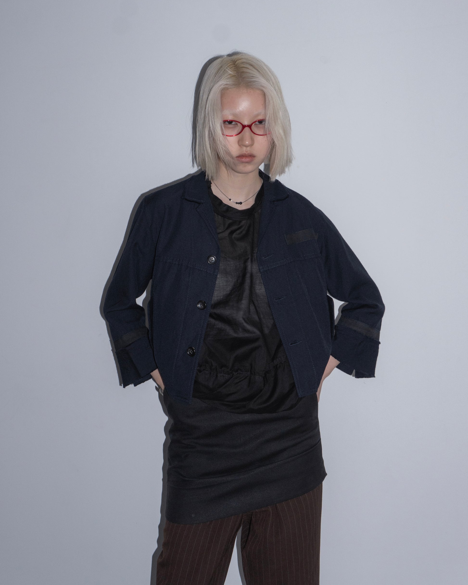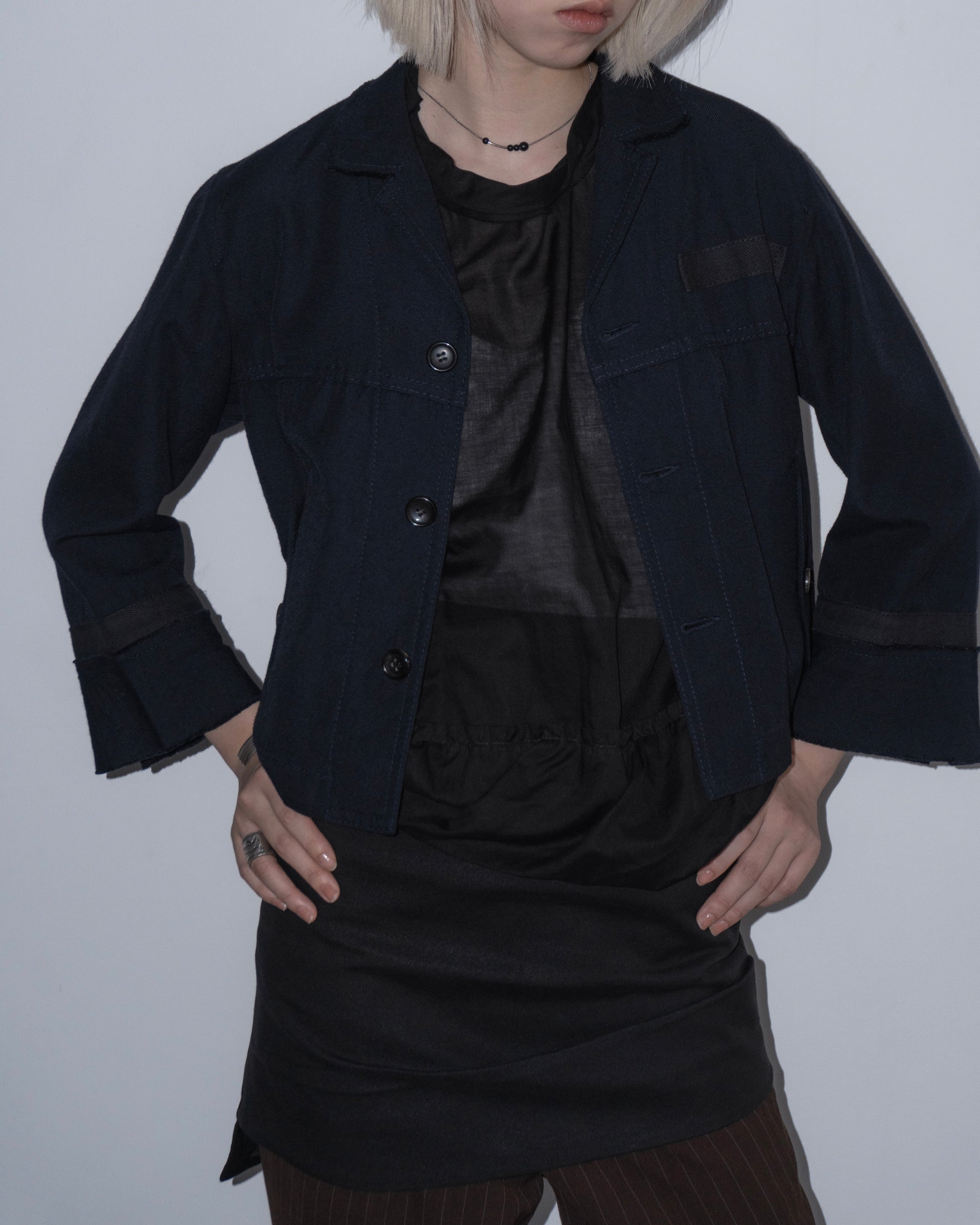 tricot COMME des GARCONS Cut-off Collar Jacket (Navy)